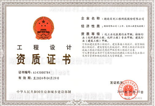 Class A Engineering Design Certificate for Chemical,Petrochemical, Pharmaceutical, Architecture & Building(Construction Engineering), Textile (Synthetic Fiber MaterialsEngineering, Synthetic Fiber Engineering) Industries
