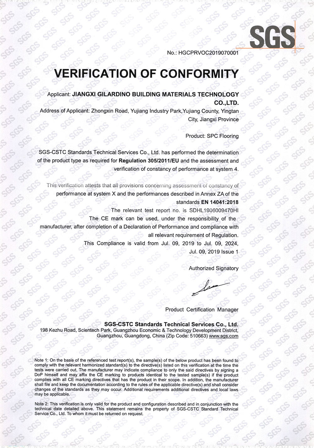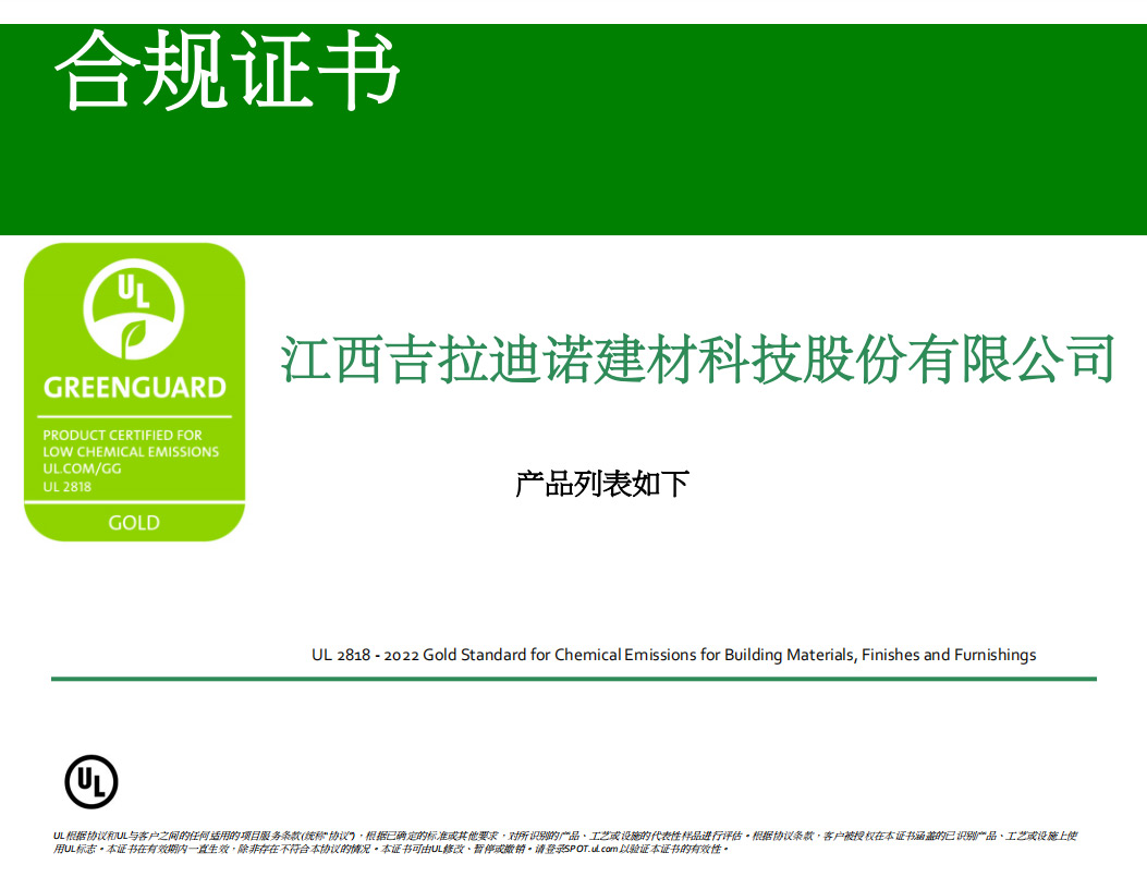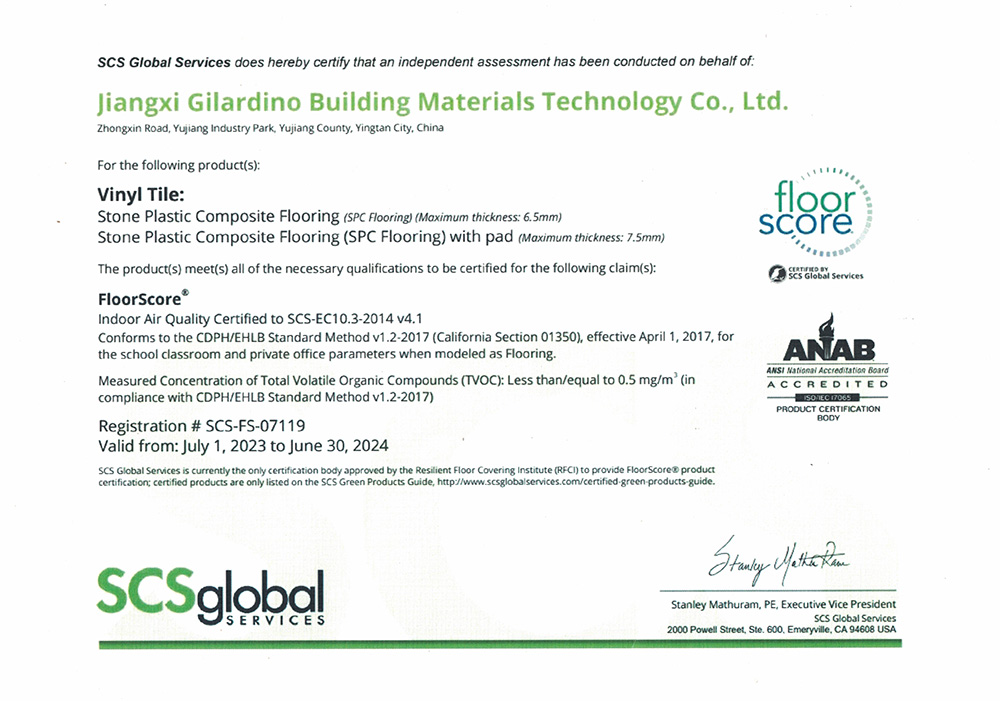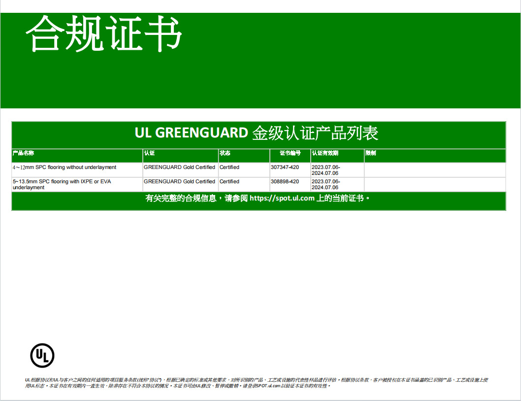 Floorscore 認(rèn)證證書