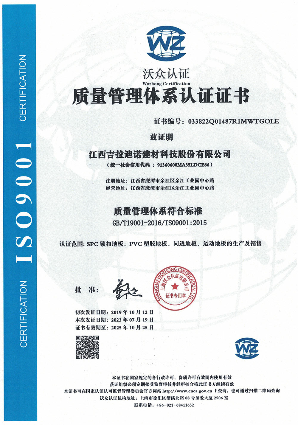 質(zhì)量管理體系認(rèn)證證書