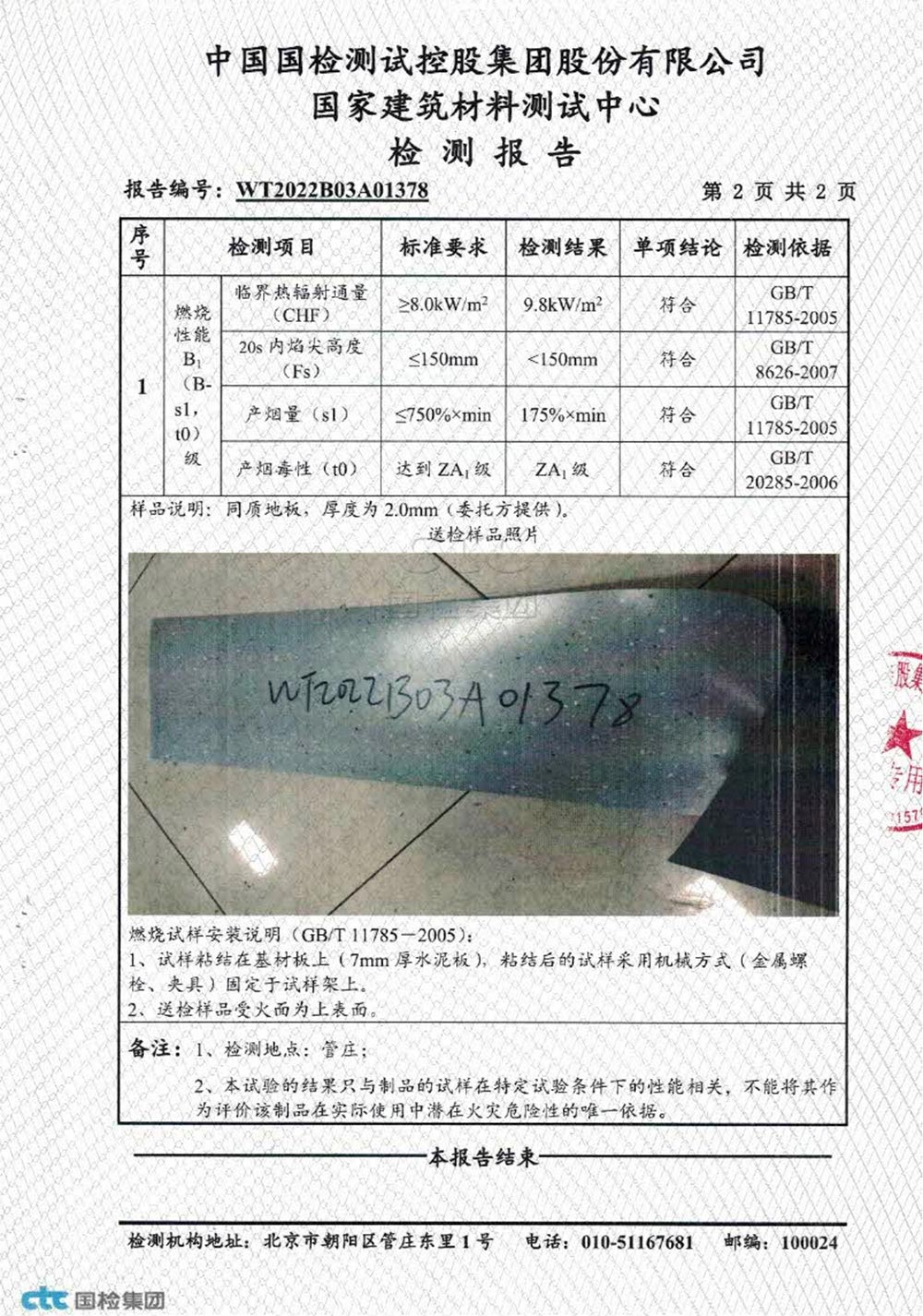 國(guó)家建筑材料測(cè)試中心防火等級(jí)檢測(cè)報(bào)告